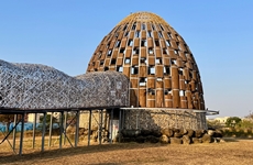 嘉義出身のアーティスト、王文志氏による巨大なオブジェです。木材や籐、岩などを使って「山にそびえる大樹」をイメージしており、夜のライトアップは幻想的で、市民の憩いの場になっています。