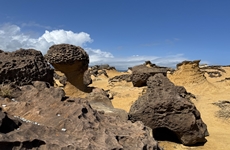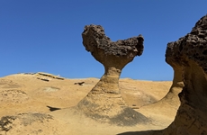 「野柳地質公園」は、波と風による侵食と風化によってできた奇岩が点在する海岸地帯で、台湾を代表する自然景勝地のひとつです。