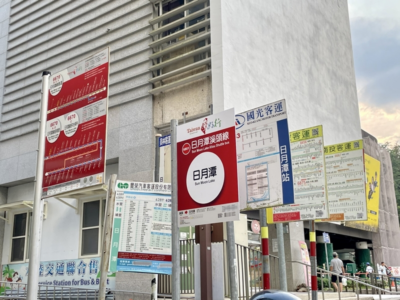 日潭棧(サンレイクホテル)への移動方法は、バスが到着する「水社旅客中心」から、「環湖バス(6669系統)」に乗り換えて「伊達邵」バス停まで行く。