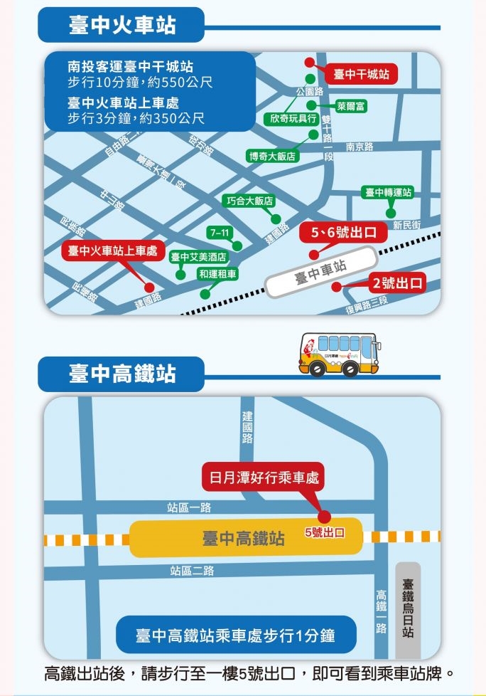 高速鉄道台中駅南投客運カウンター:886-4-36018665(駅ビル1階5番出入口3番乗り場)